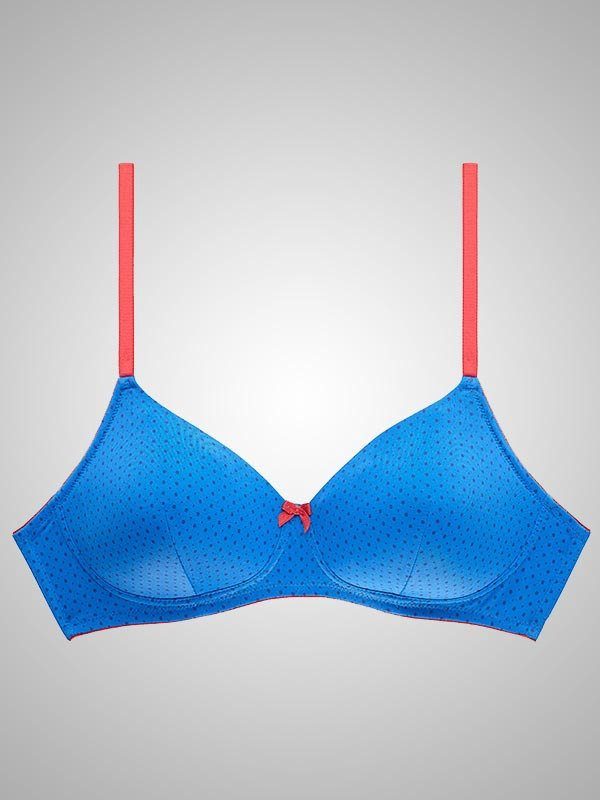Amante women’s wire free T-shirt bra. Wrap yourself with this smooth finish, trendy t-shirt bra. This padded delight pampers your curves to give you the perfect poise. The soft microfiber fabric keeps you comfortable and confident all day long. Flaunt your playfulness with these polka dotted T-shirt Bra which offers comfort all day long. Young and youthful polka dot print. Made of stretch microfiber fabric. Wirefree comfort. Contrast straps and bow. Smooth elasticated straps. Soft hook and eye tape.